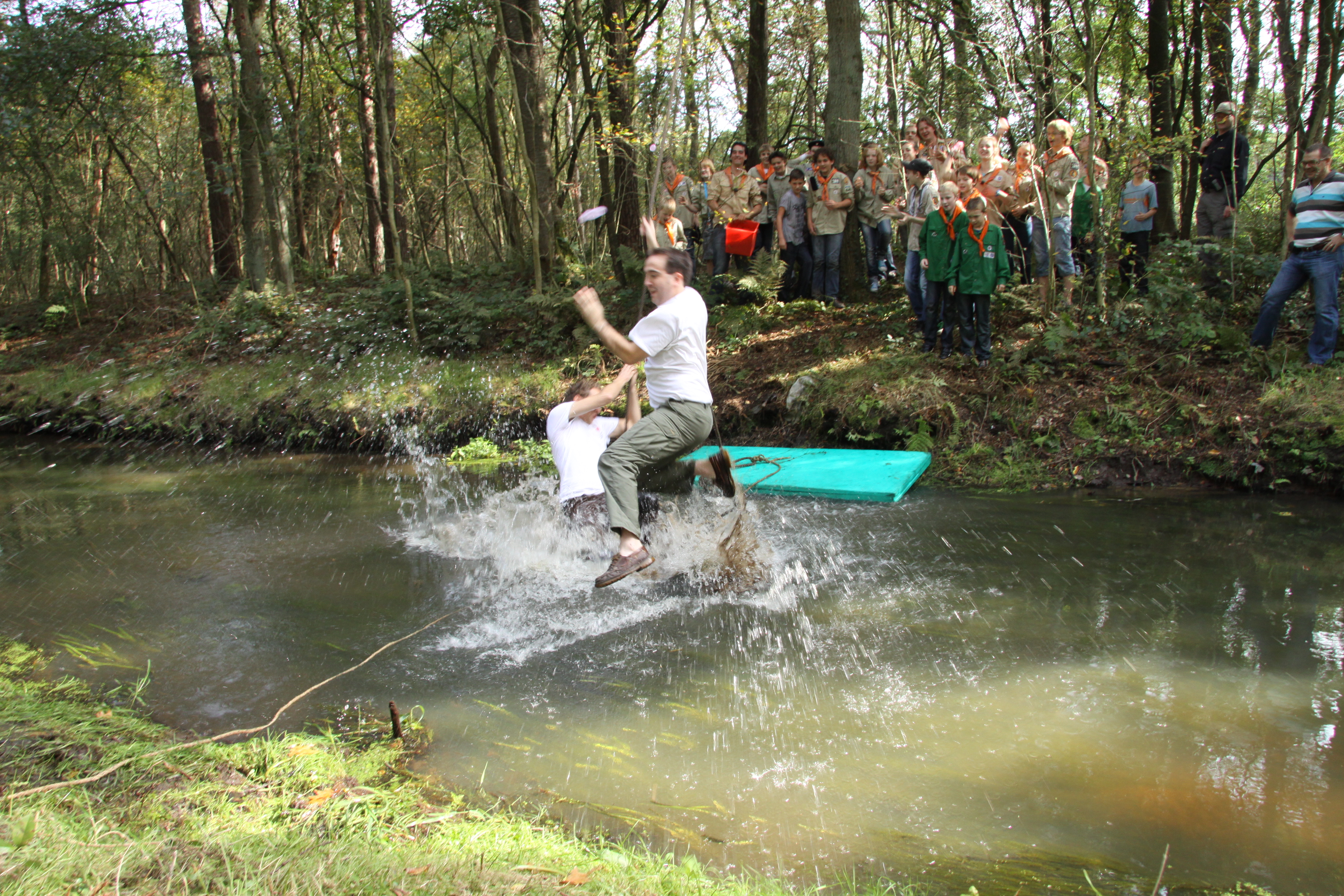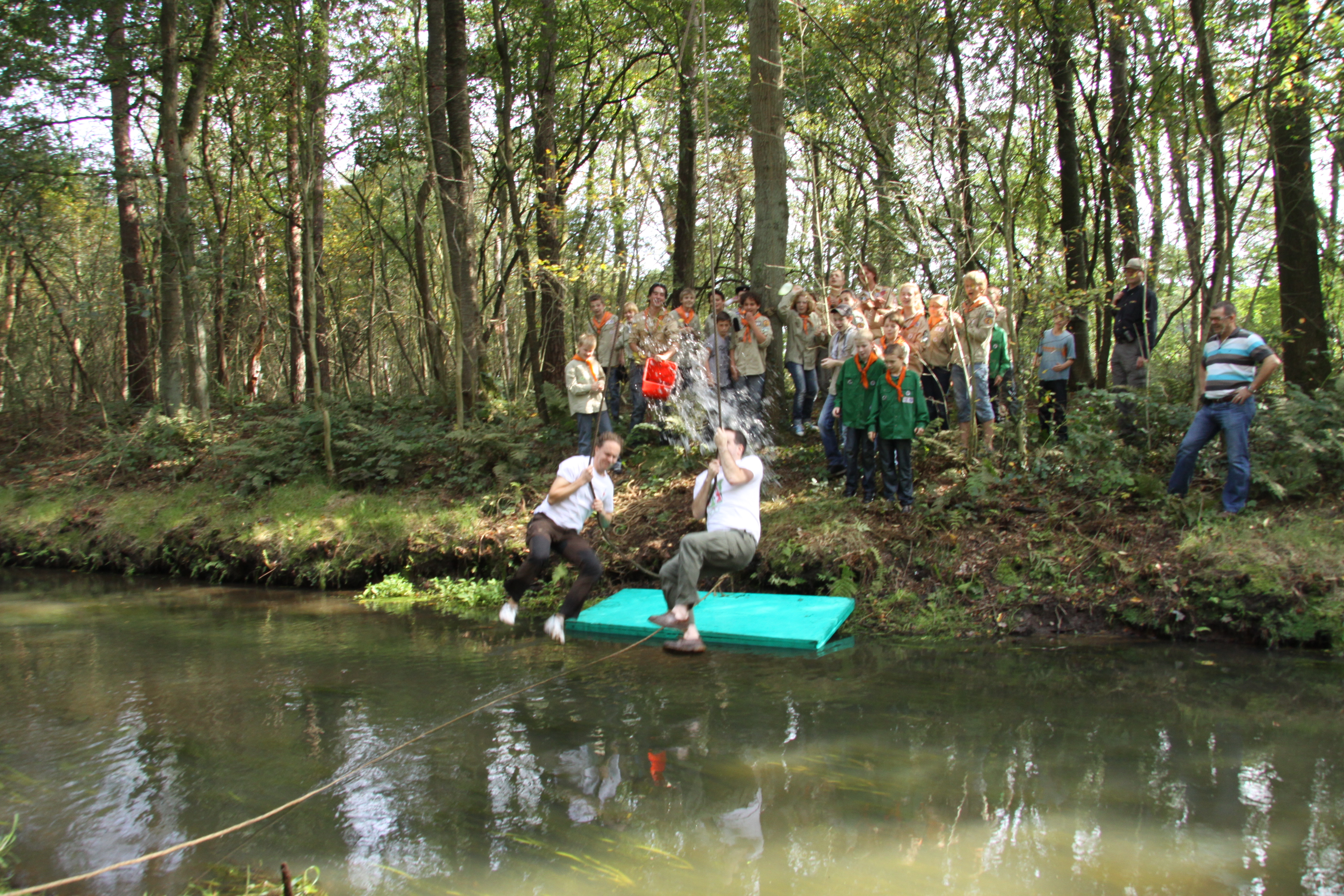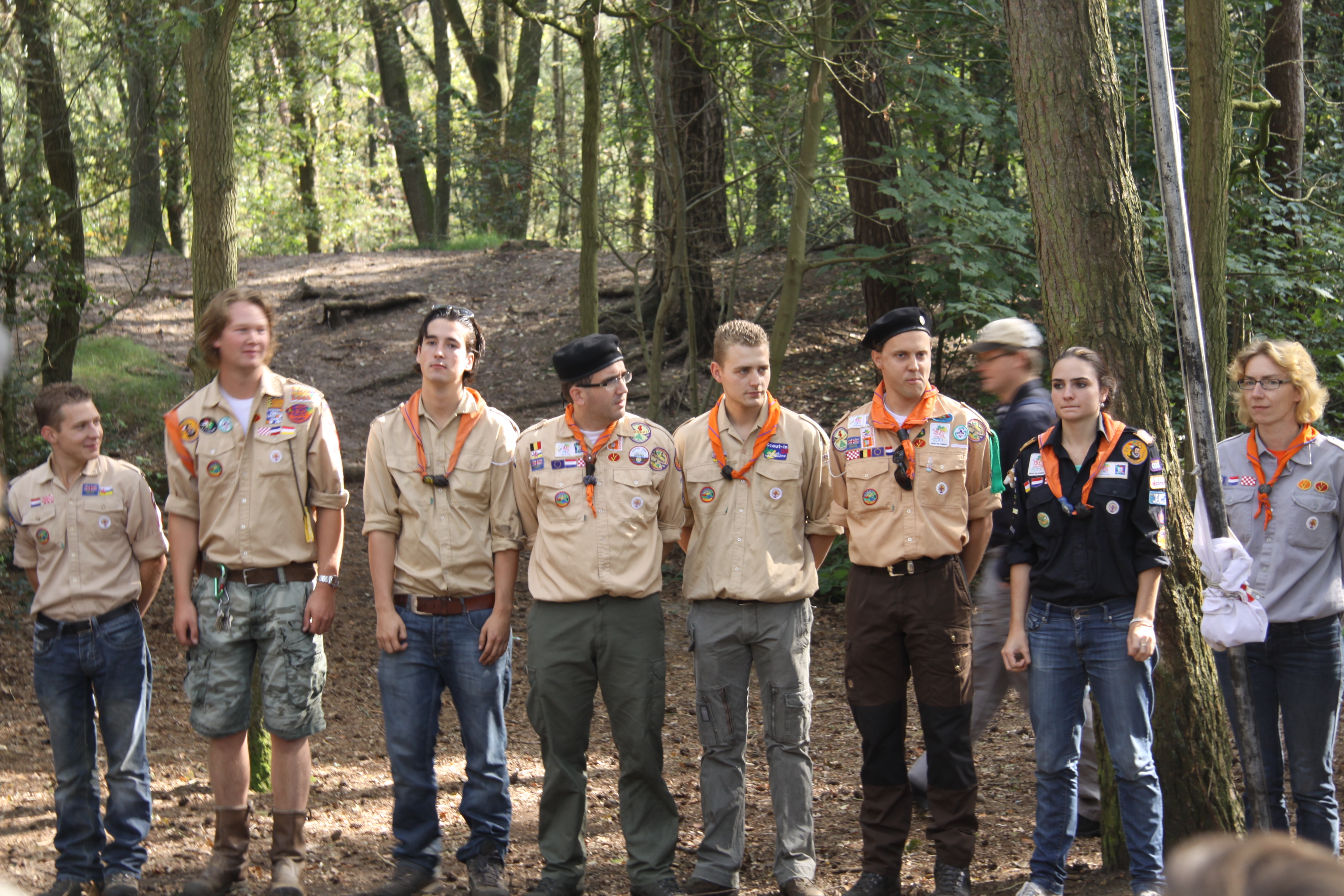 Foto's van het overvliegen van de welpen naar de scouts en foto's van het afscheid van Frank, Joost en Matthias