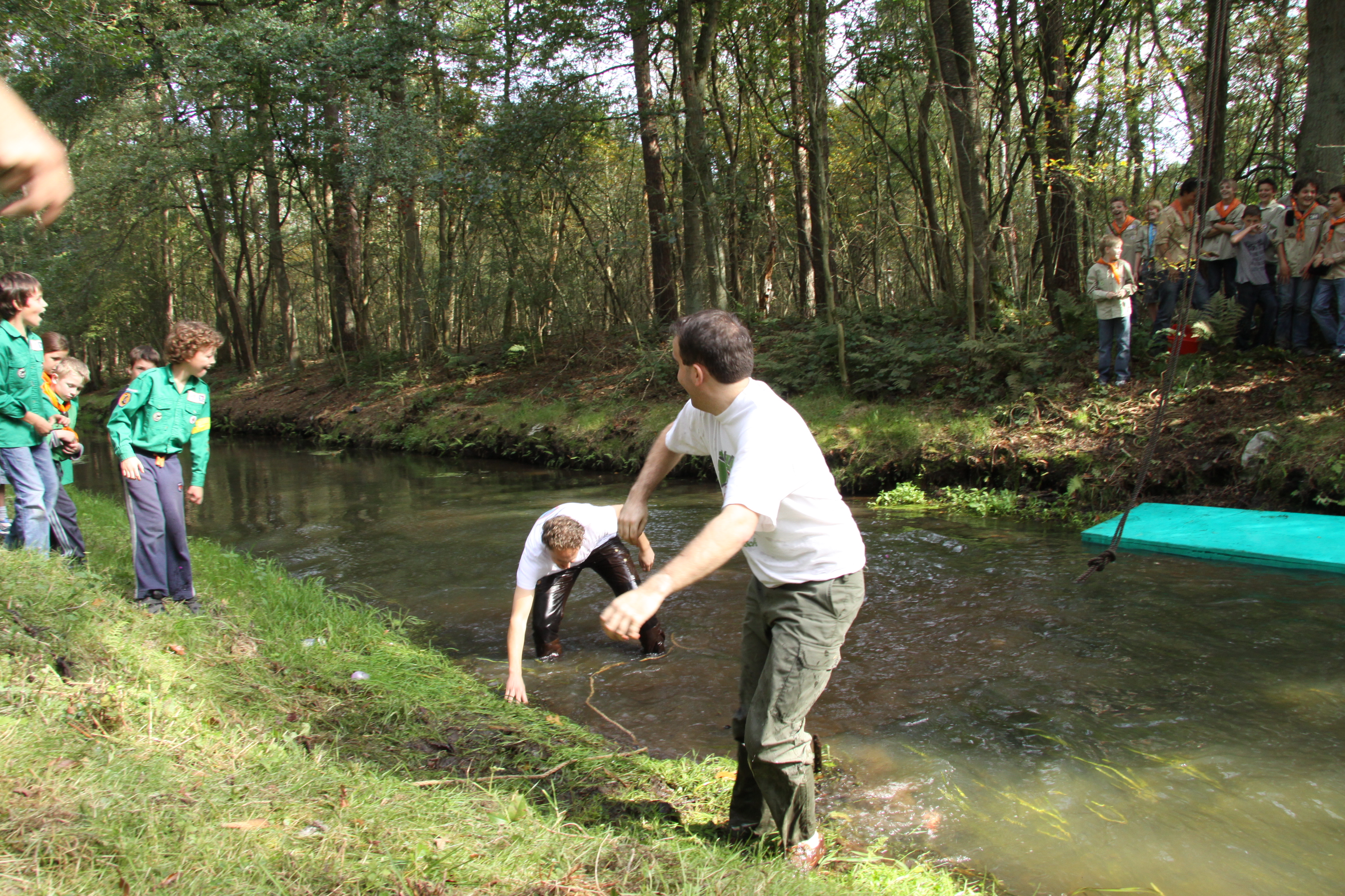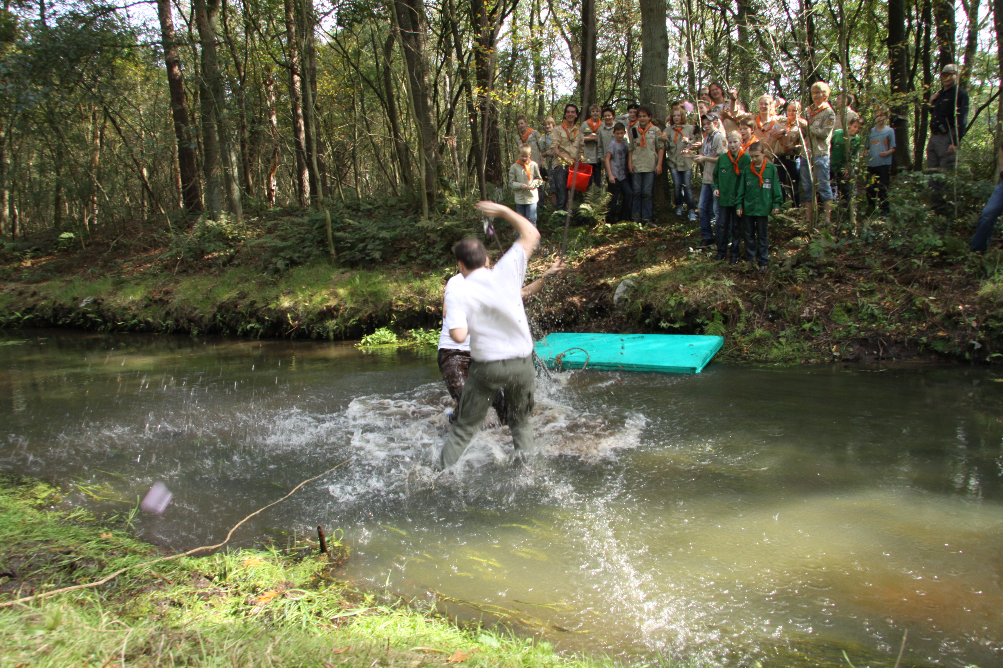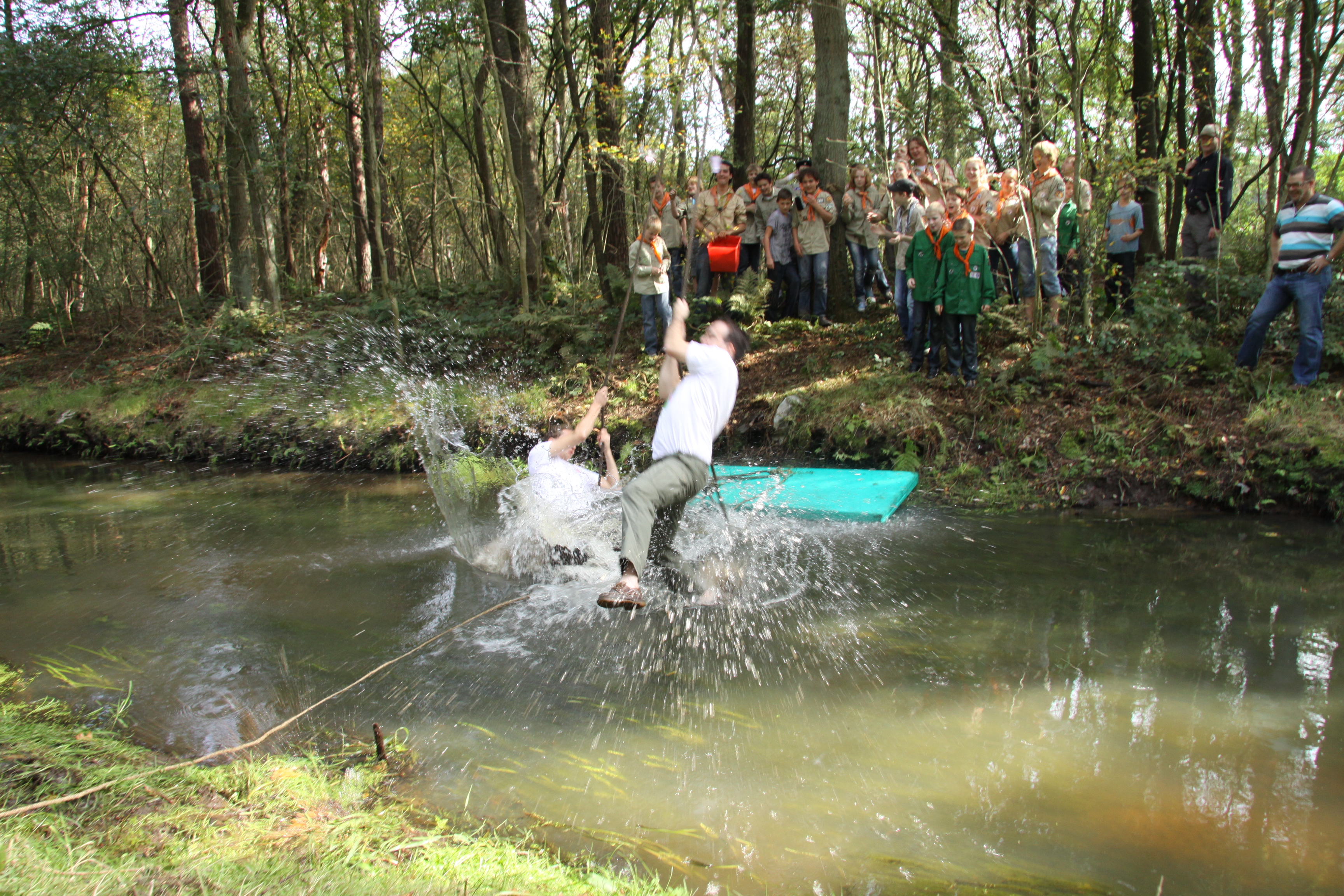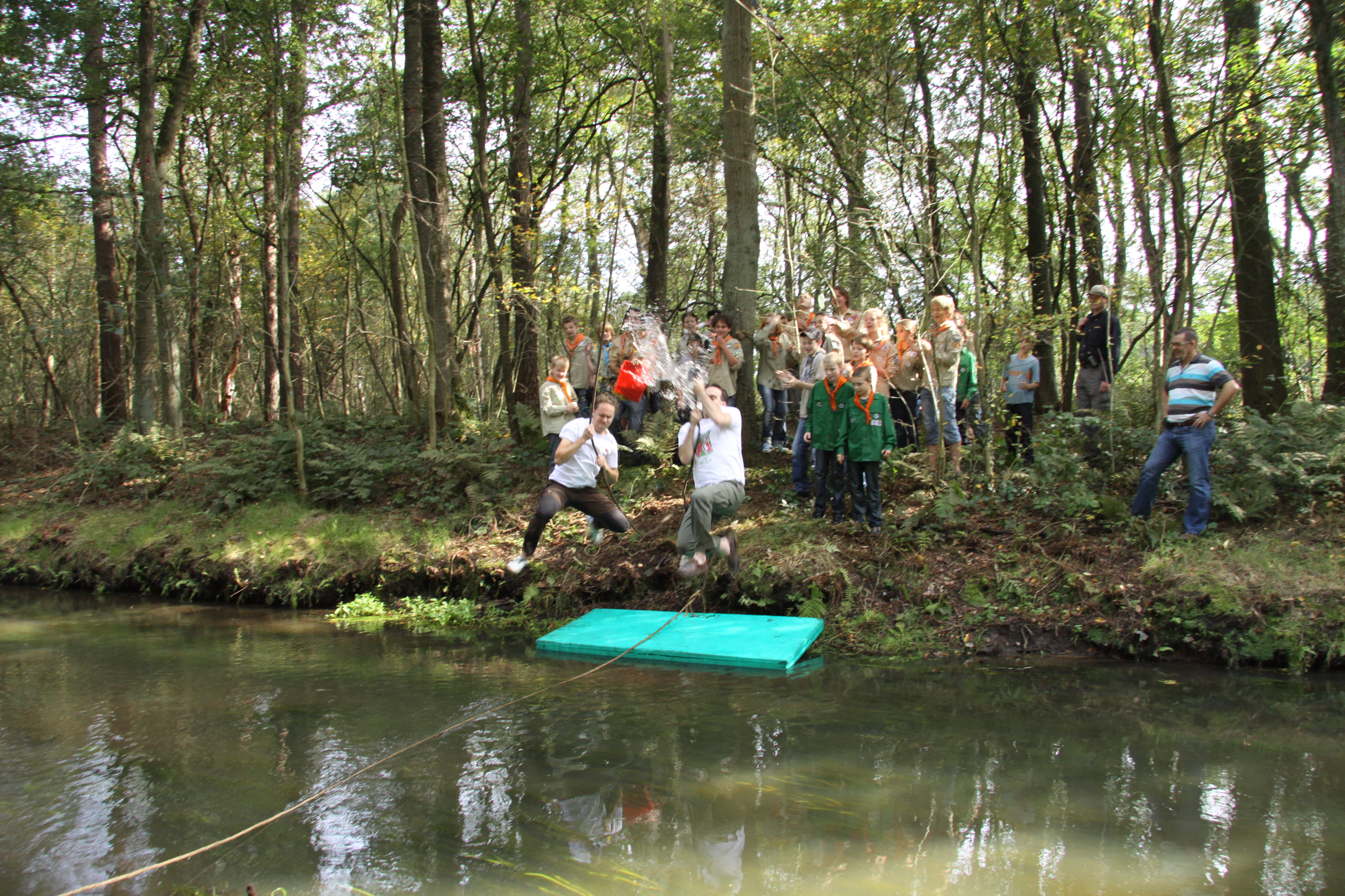 Foto's van het overvliegen van de welpen naar de scouts en foto's van het afscheid van Frank, Joost en Matthias