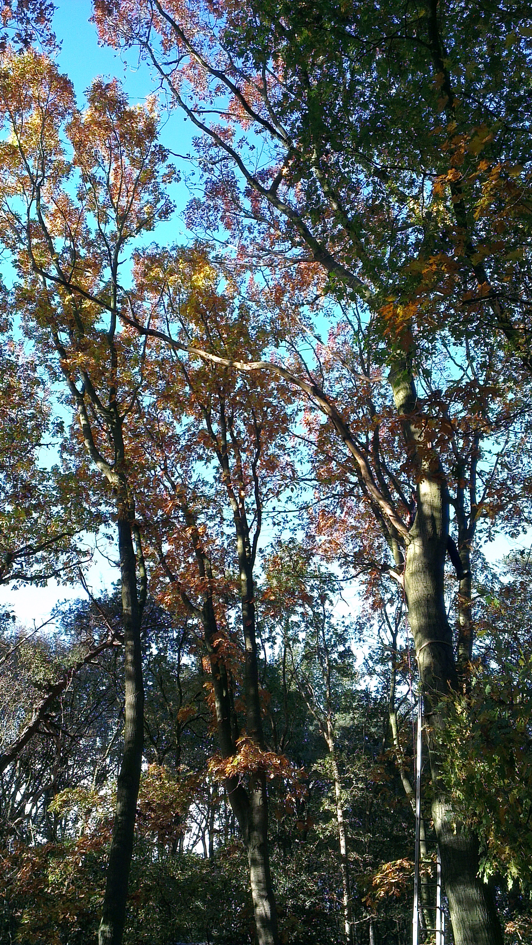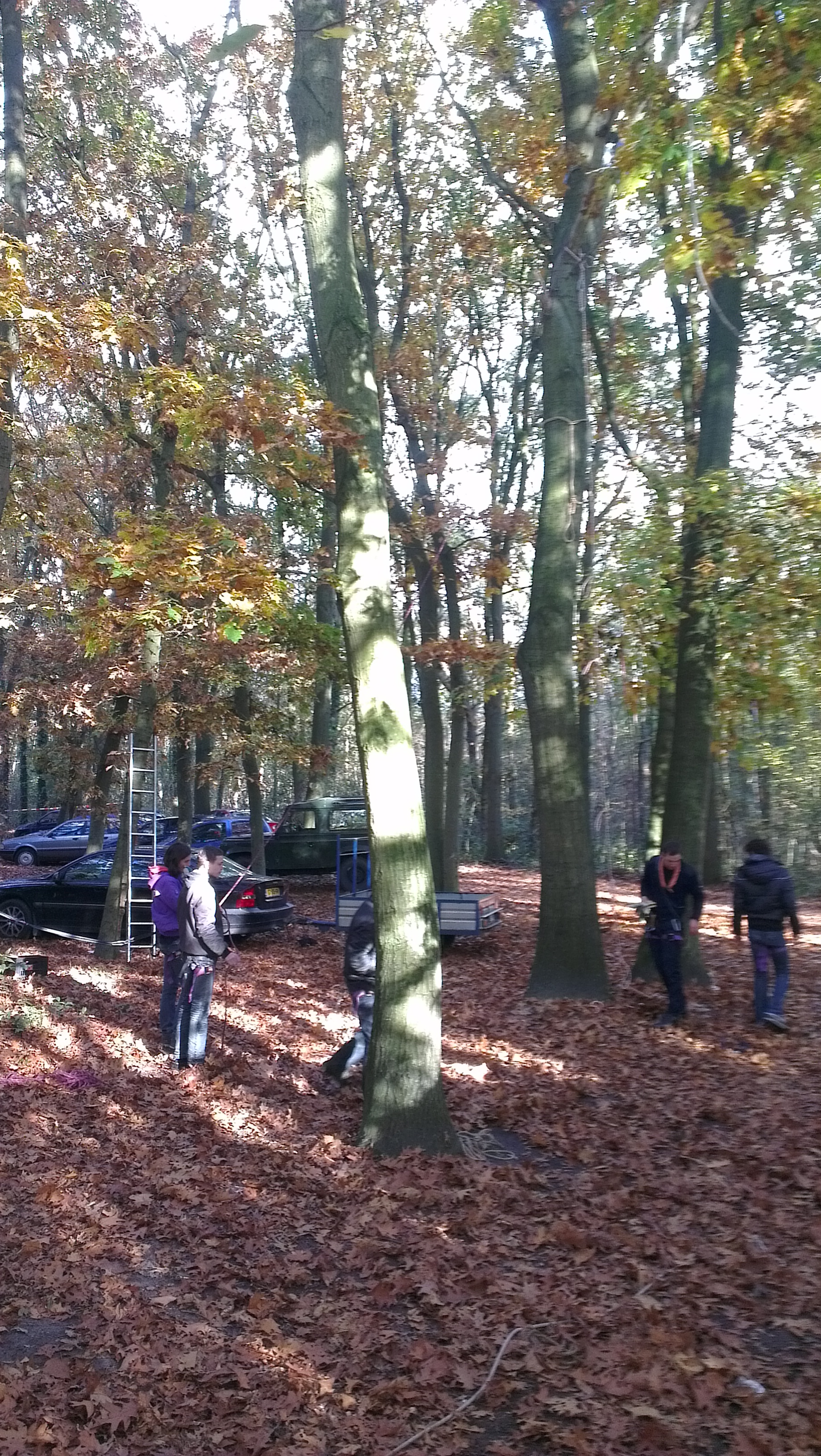 De foto's, gemaakt met mobiel, zijn wat onduidelijk, maar in de bomen ziet u enkele personen zitten