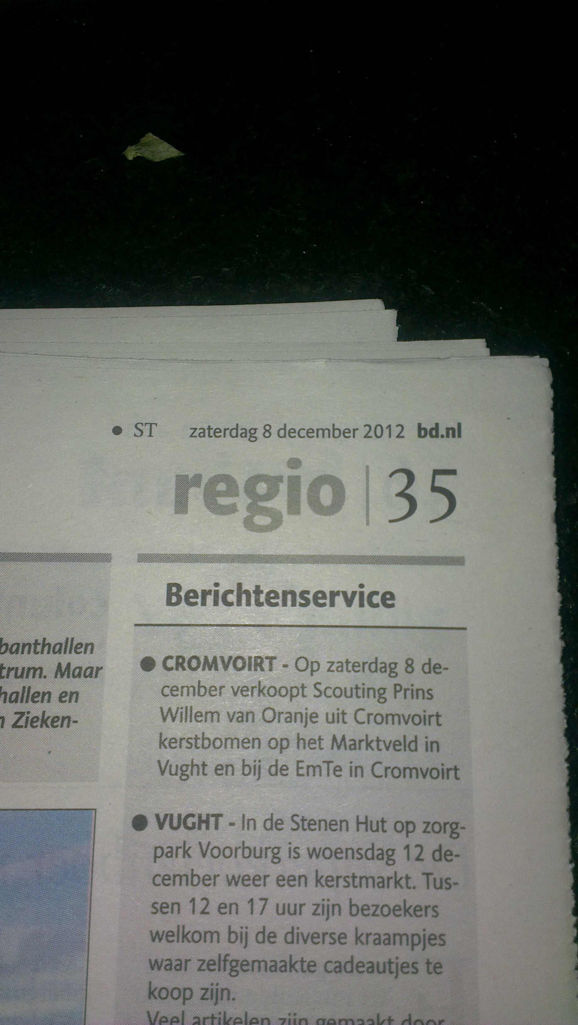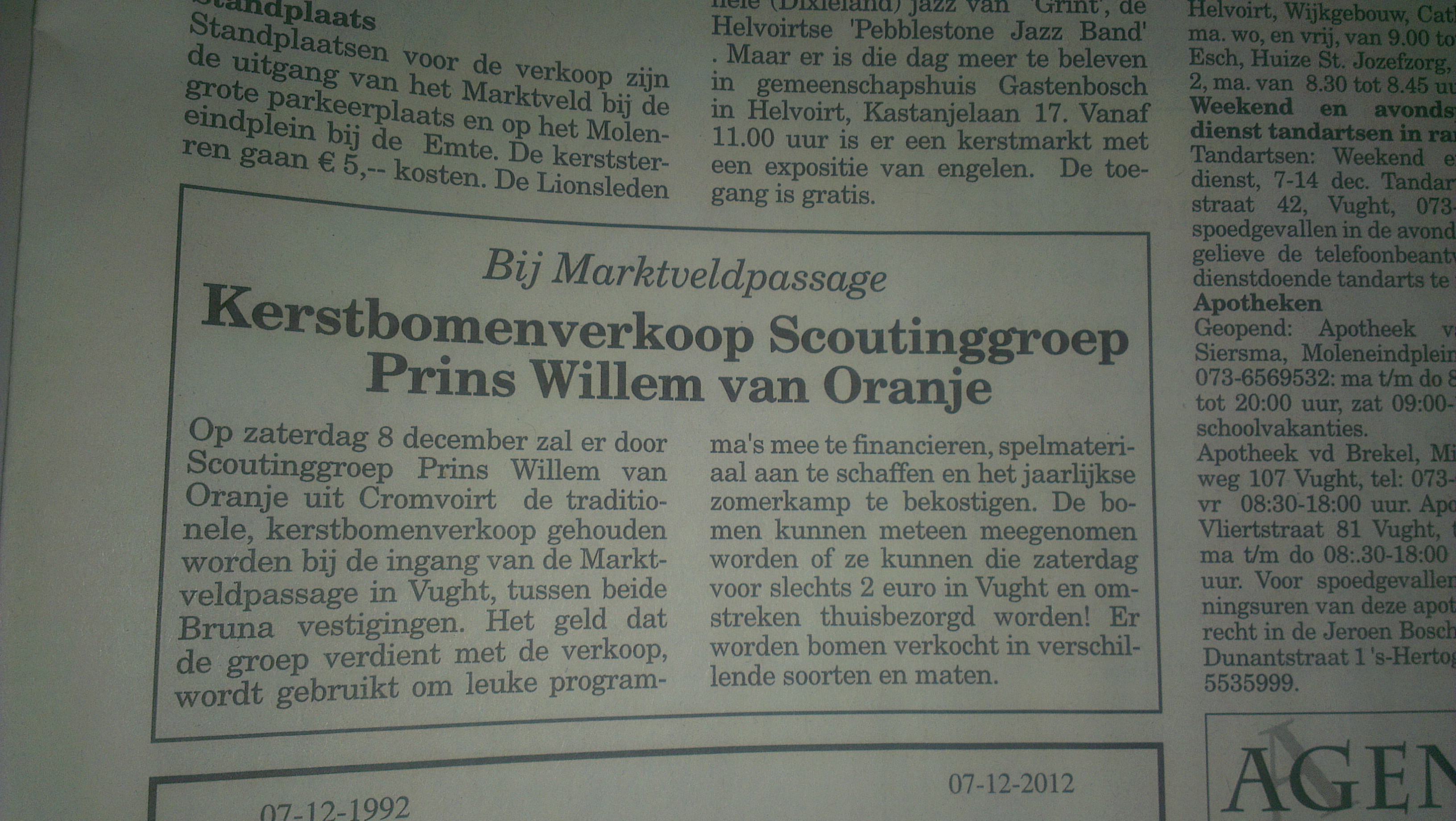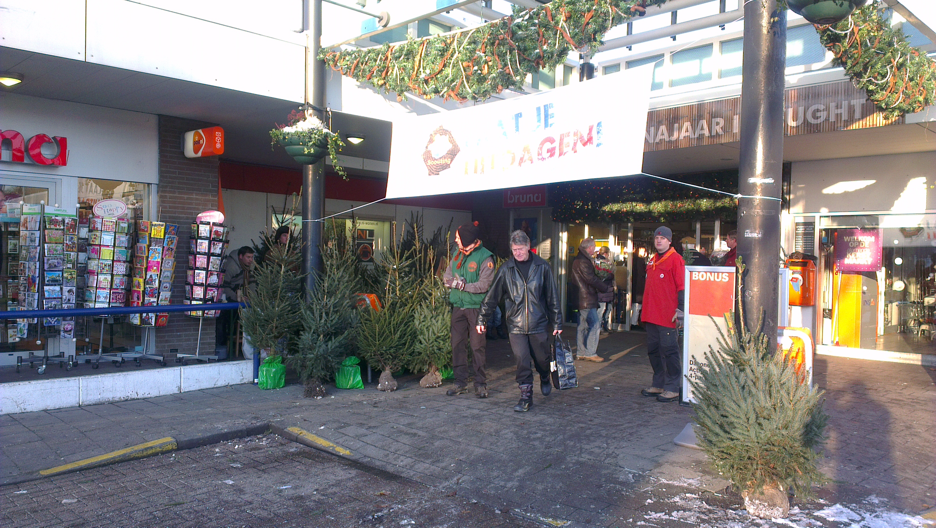Enkele foto's van de verkoop van kerstbomen op 't Marktveld in Vught en bij de Emte in Cromvoirt door de Scouts en de Rowans op 8 december 2012