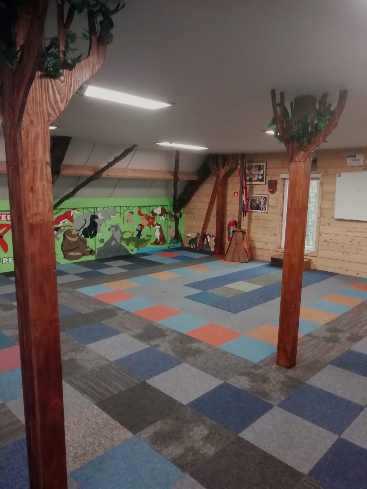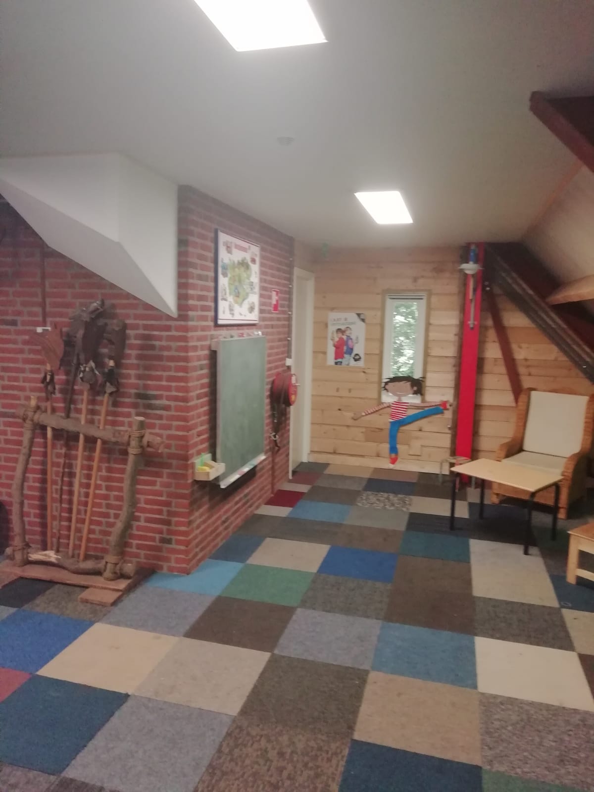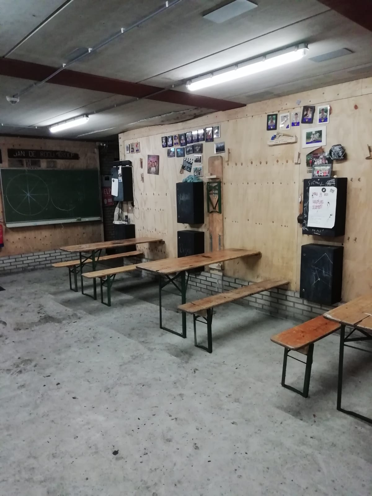 Foto's van de binnenkant van de vernieuwde blokhut.