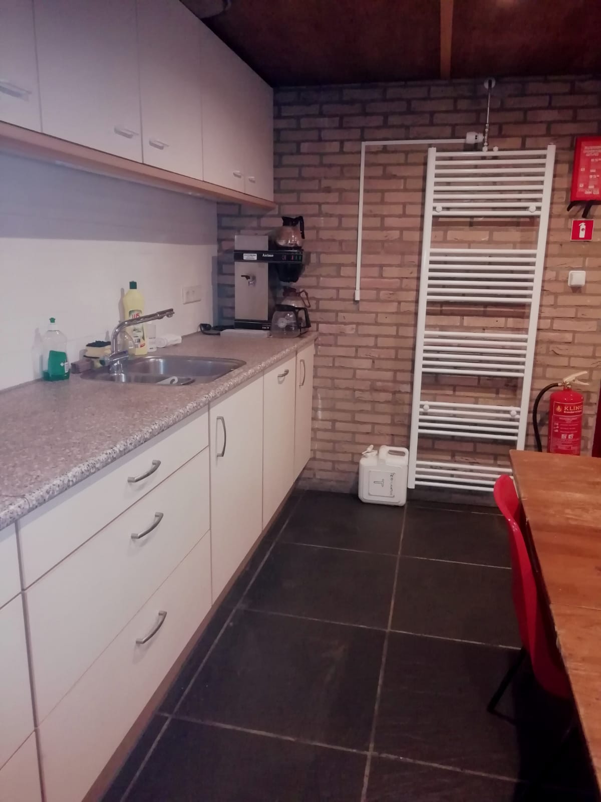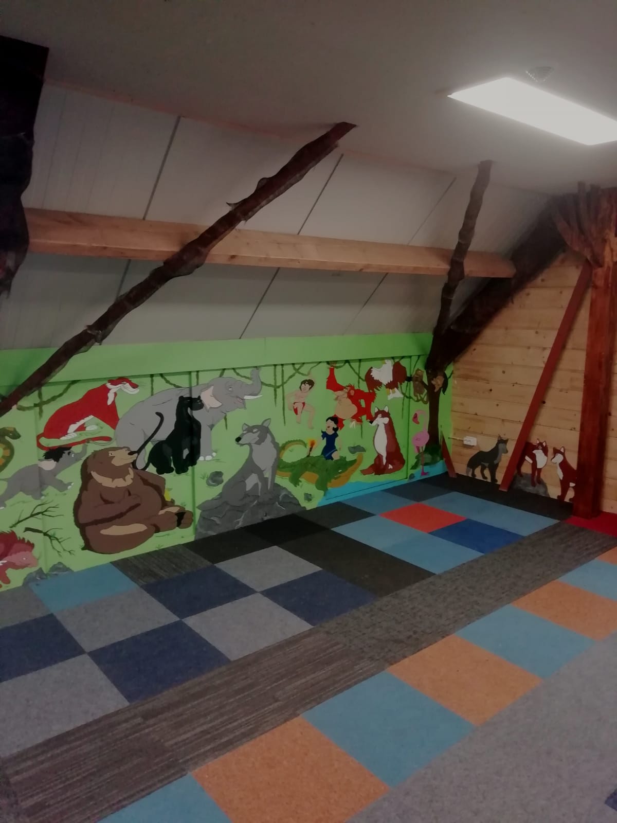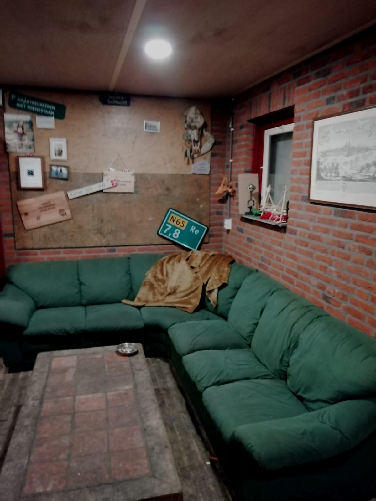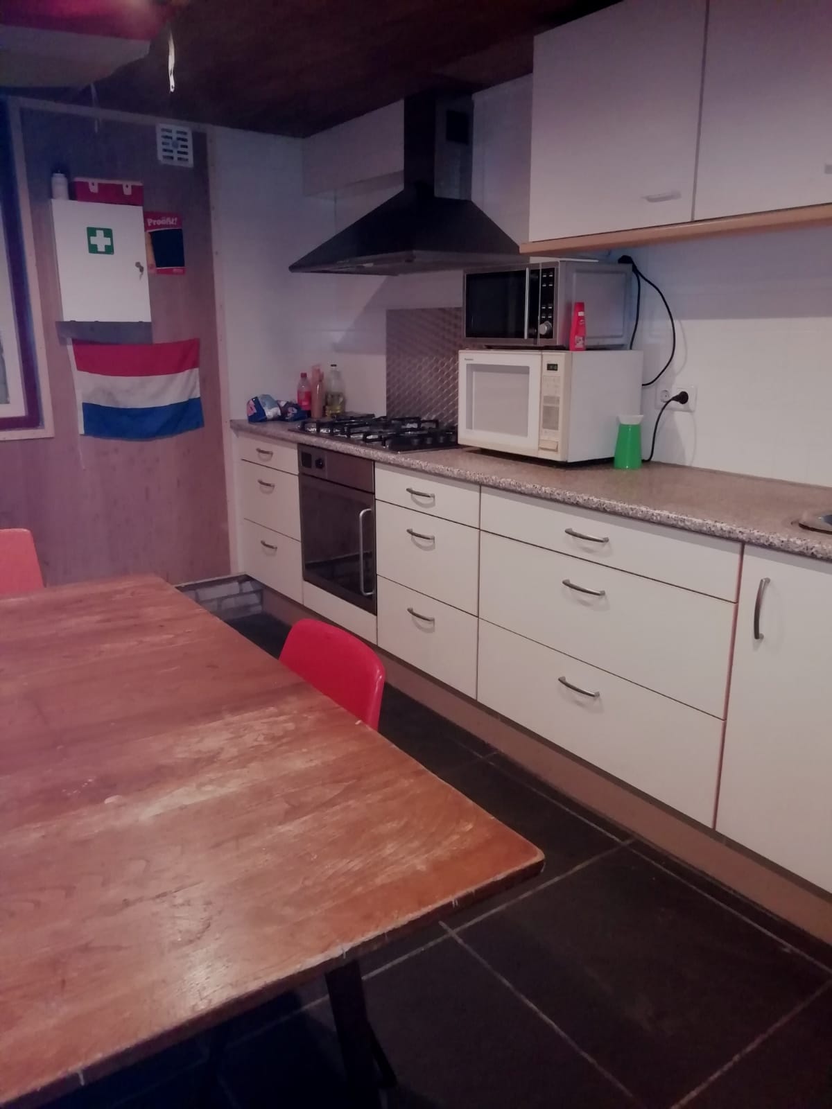 Foto's van de binnenkant van de vernieuwde blokhut.