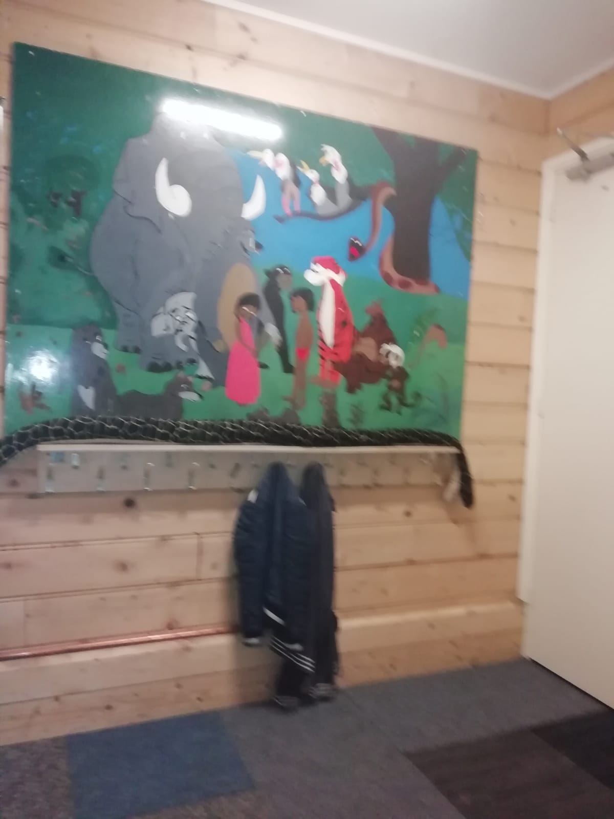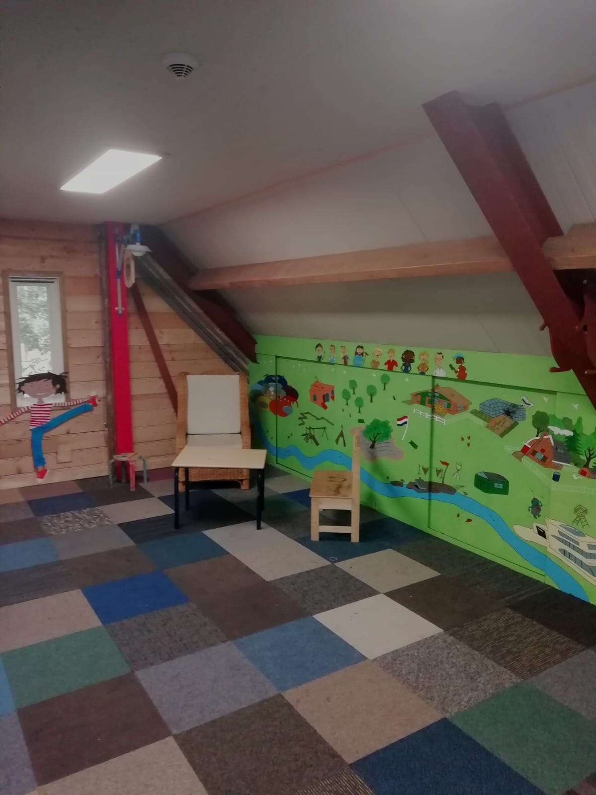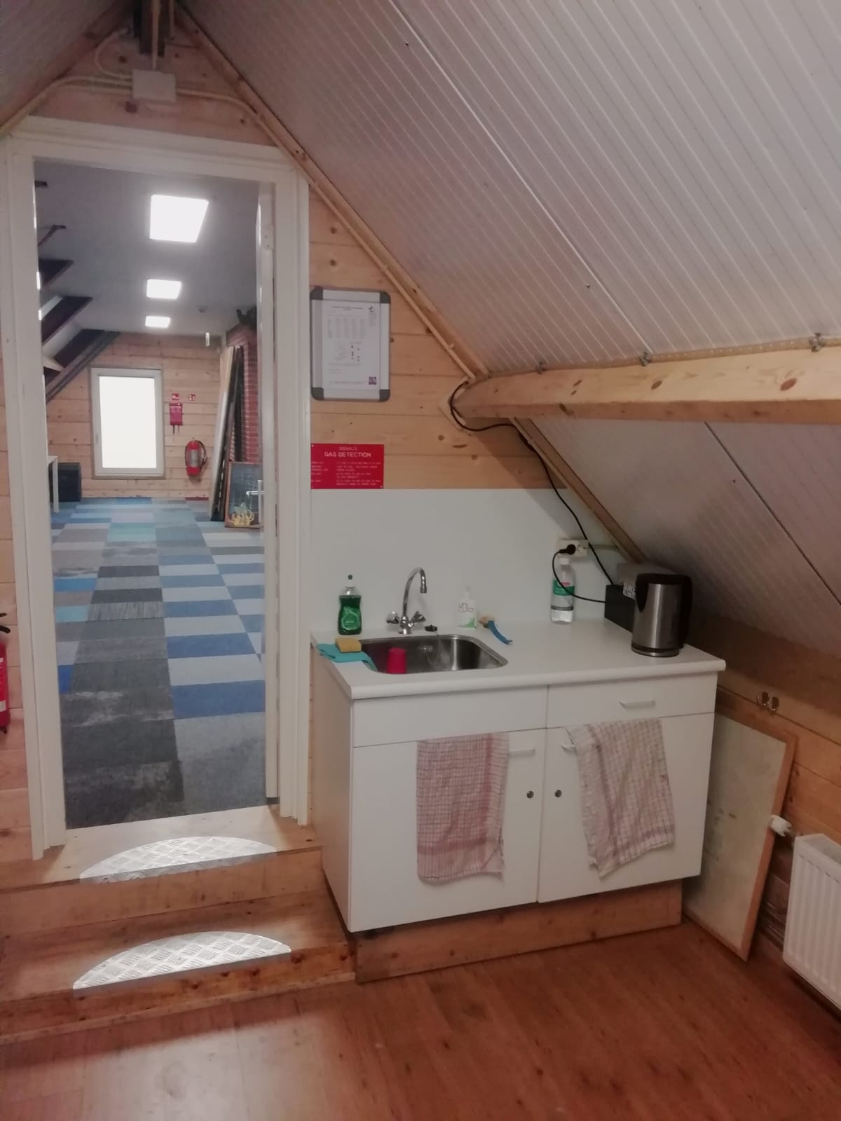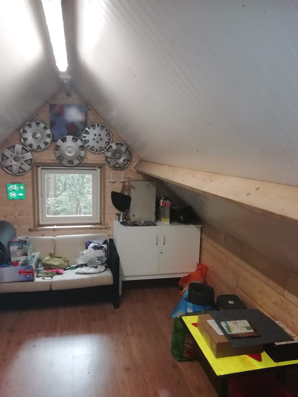 Foto's van de binnenkant van de vernieuwde blokhut.