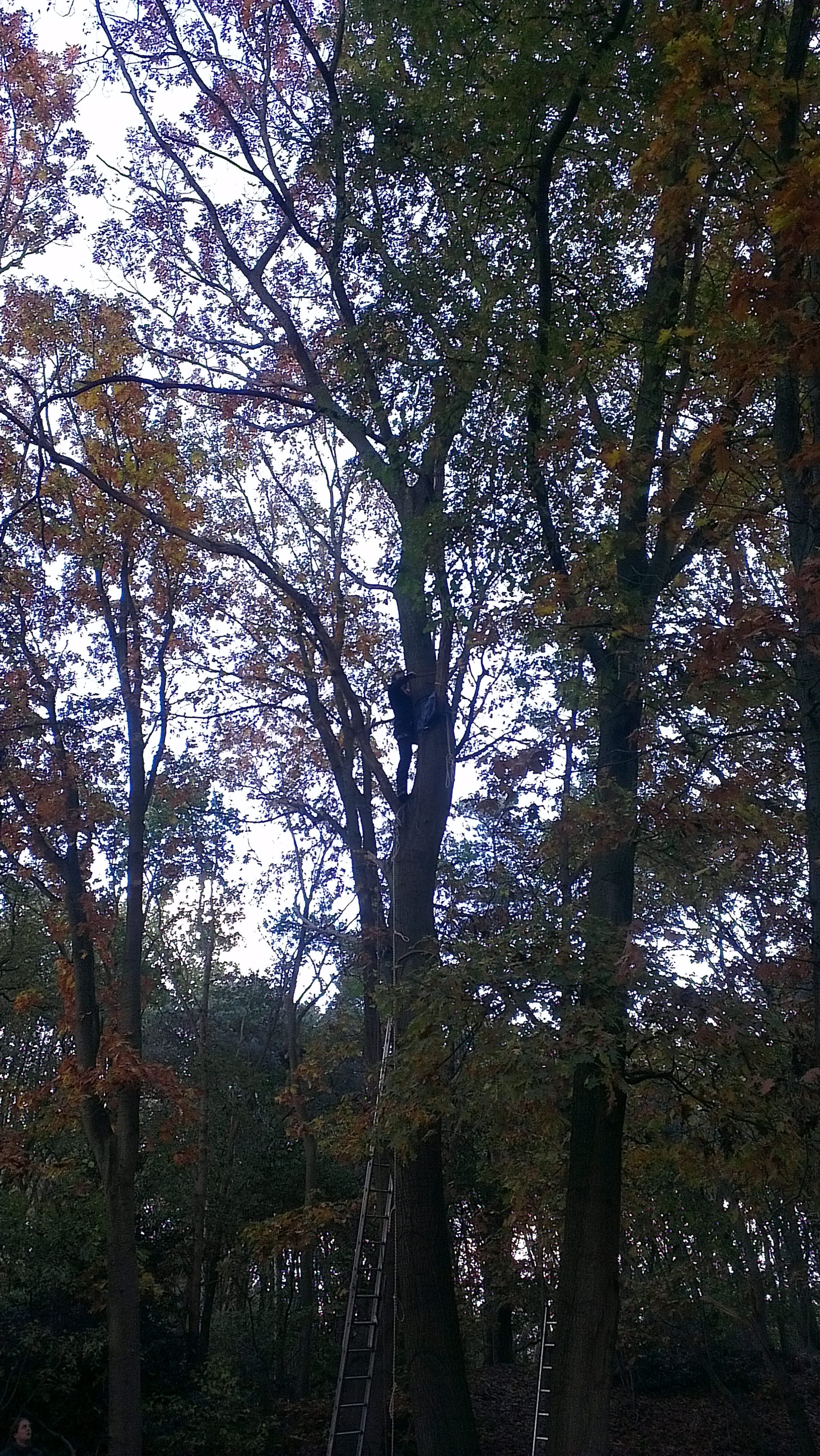 De foto's, gemaakt met mobiel, zijn wat onduidelijk, maar in de bomen ziet u enkele personen zitten