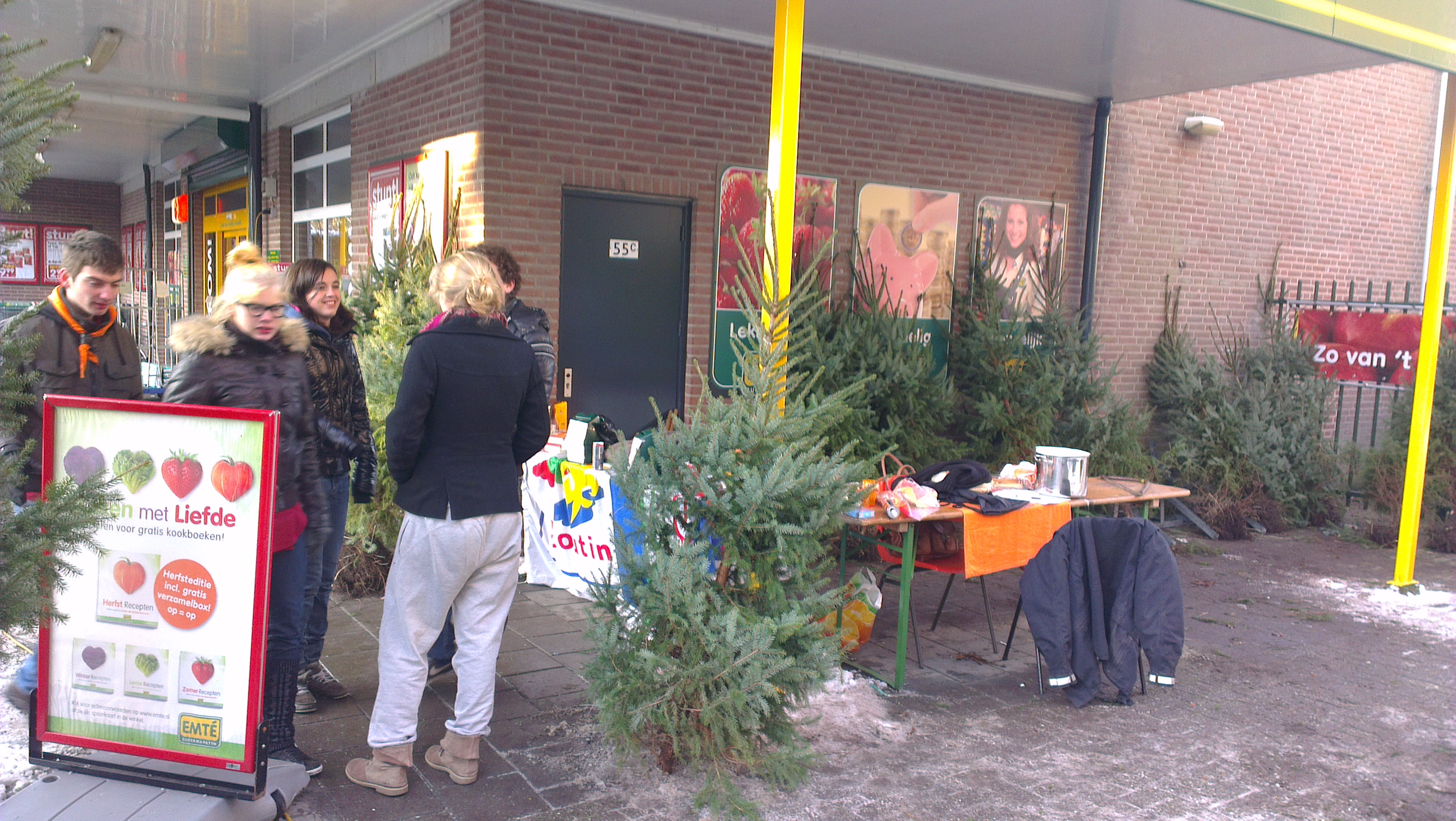 Enkele foto's van de verkoop van kerstbomen op 't Marktveld in Vught en bij de Emte in Cromvoirt door de Scouts en de Rowans op 8 december 2012
